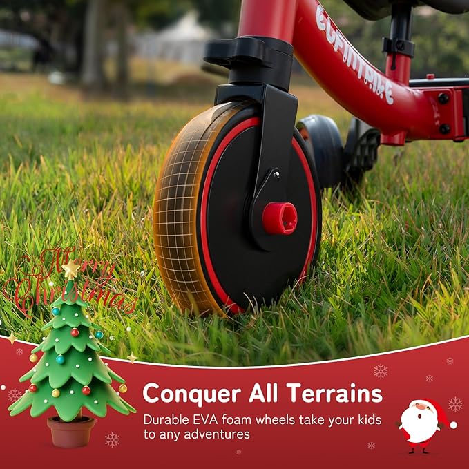 - Sturdy & Safe: The sturdy carbon steel frame makes the toddler trike stable and durable. The limited 120° steering of the non-slip armrests can prevent rollover, and the widened and completely enclosed wheels can prevent the baby’s feet from being caught and slipping. Ensure full protection for children playing indoors or outdoors