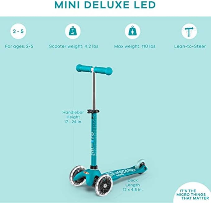 Micro Kickboard Mini Deluxe LED Three-Wheeled Lean-to-Steer Swiss-Designed Micro Scooter