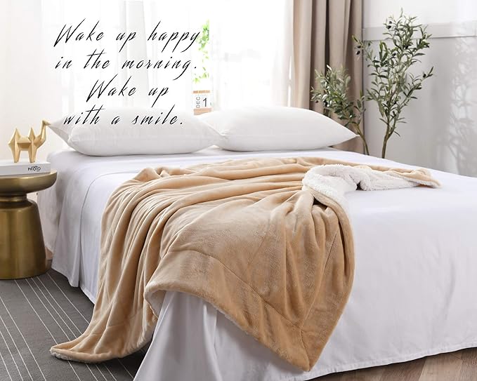 NANPIPER Reversible Sherpa Flannel Blanket Super Soft Fuzzy Lightweight Fleece Microfiber for Bed/Couch (50"x60",Beige)