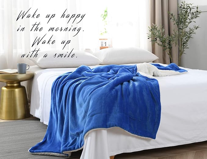 NANPIPER Flannel Blanket Reversible Sherpa Throw Blanket Super Soft Fuzzy Plush Fleece for Bed/Couch Lightweight(50"x60",Princess Blue)