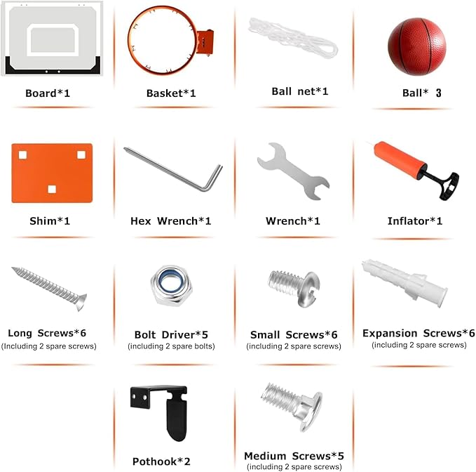 - 🏀GUARANTEED FUN.This mini indoor basketball hoop will give every player an authentic basketball experience. YOU WILL GET The professional-grade basketball hoop, and 2 pcs Mini rubber ball, which arrives deflated, will give you the game-like action that you need.