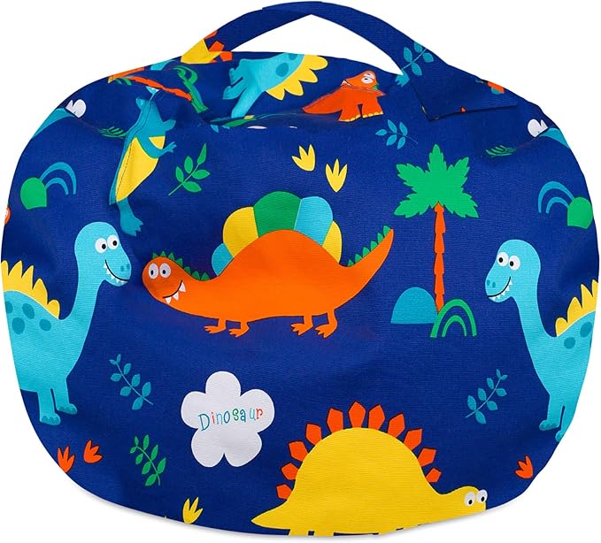 Posh Stuffable Kids Stuffed Animal Storage Bean Bag Chair Cover - Childrens Toy Organizer, Large-38 - Canvas Dinos on Blue
