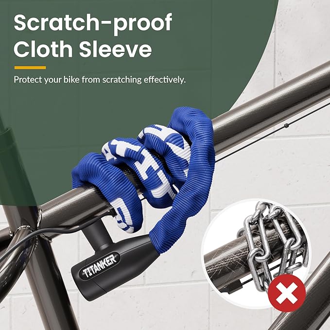 - Stylish Fun Colors Available: Purple, Black and Blue bike locks offer colorful choice to pretty match your bikes besides a sense of security during usage. Titanker chain bike lock get ready for added protection of your bikes.