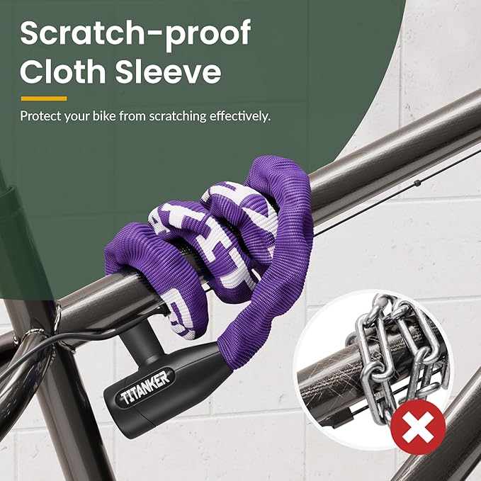 - Protective Cloth Sleeve & Dust Cover: Chain is enclosed in protective cloth sleeve, which effectively protects the bike lock chain from rusting and scratching
