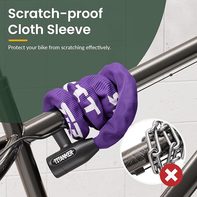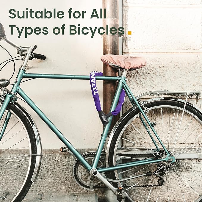 - Stylish Fun Colors Available: Blue, Black and Purple bike locks offer colorful choice to pretty match your bikes besides a sense of security during usage. Titanker chain bike lock get ready for added protection of your bikes.