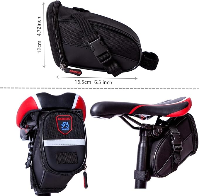 - 🚴 WATERPROOF SEAT BAG (3X STORAGE) - Aerodynamic wedge-shaped saddle bag features: ① Main compartment for tools ② Mesh pocket for keys/phone ③ Hidden patch storage between tire levers. Equipped with tool-free quick-release buckle & reinforced stitching. IPX4 waterproof rating protects gear in rain.