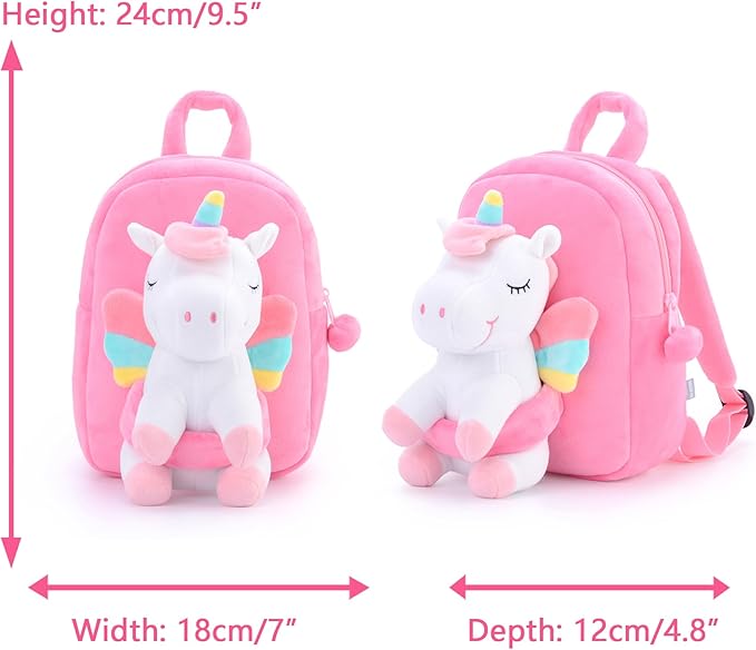 Gloveleya Unicorn Kids Backpack β Soft Plush Toddler Backpack for Girls, Cute Back-to-School Gift, Preschool Bag for Snacks, Toys & Books, Travel & Everyday Use, 9 Inches