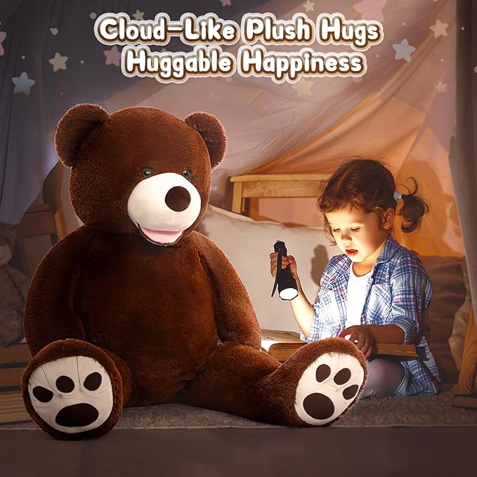 MorisMos Smile Giant Teddy Bear, 51inch Large Stuffed Bears with Big Footprints, Big Stuffed Animals Cuddly Plush Gifts for Girlfriends, Boyfriend, Dark Brown