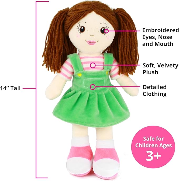 - DURABLE AND TRAVEL-FRIENDLY: Built to withstand years of play, this rag doll is soft, lightweight, and easy to carry, making it the ultimate companion for playtime at home, daycare, or on family trips.