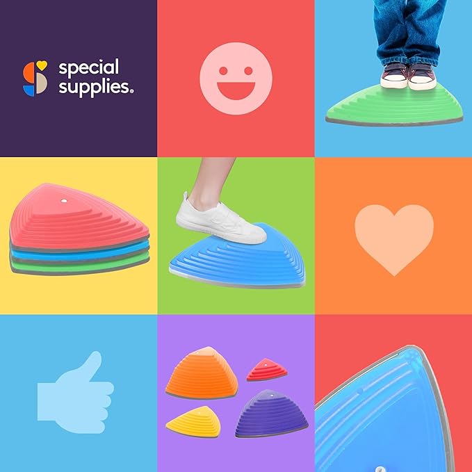 - Indoor and Outdoor Play – Special Supplies balancing blocks are durable enough to be enjoyed almost anywhere! Their rugged nature and full rubber, slip-resistant bottoms make them safe for carpet, tile, and grass.