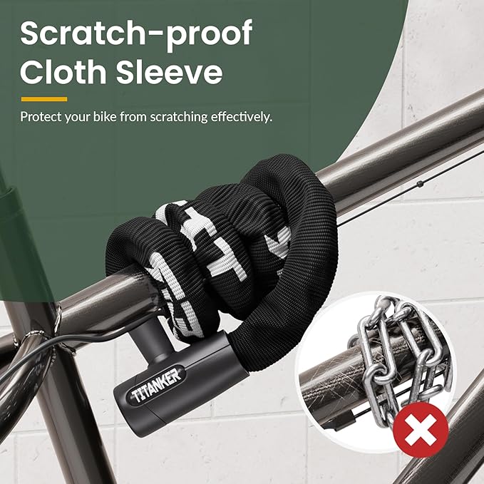- Protective Cloth Sleeve & Dust Cover: Chain is enclosed in protective cloth sleeve, which effectively protects the bike lock chain from rusting and scratching