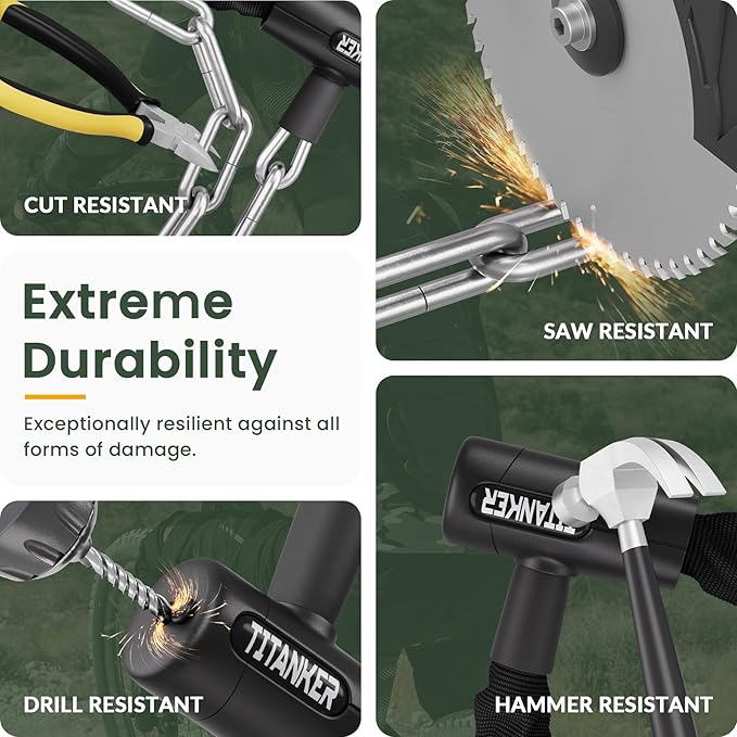 - Secure & Portable: The key can only be pulled out after the bike chain lock is locked, which prevents the key from being lost. Titanker bike lock comes with 2 keys. You can take one of the keys to use in daily life, and you can leave another key at home in case you accidentally lose one