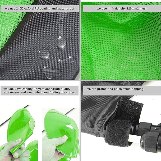- ✔️DURABLE MATERIALS-We use 210D Oxford pu800mm coating and waterproof and the dense mesh is 120g/m², Elasticity is very good, high intensity for soccer goal ,and the frame is dia:6mm fiberglass rod High-strength, can fold more than 1000 times without breaking,And the water-repellent structure will keep soccer goal dry and relaxed when it drizzles, but please avoid using it in heavy rain