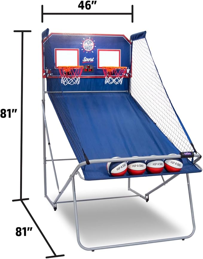 Pop-A-Shot - Dual Shot Sport | Arcade Basketball Game for Home | Paddle Scoring Hoop, 10 Game Modes, 4 Balls | Foldable for Easy Storage | Fun for All Players