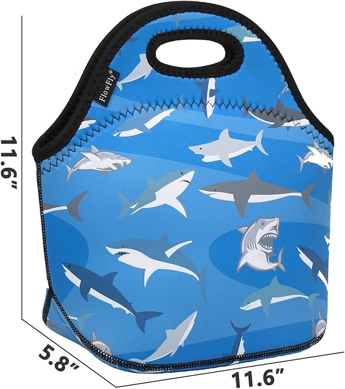 FlowFly Neoprene Kids Lunch box Insulated Soft Bag Mini Cooler Thermal Meal Tote Kit for Boys, Girls,Men,Women,School,Work, Office, Shark