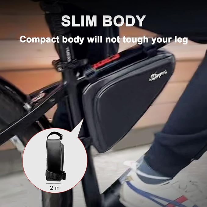- Bike Storage bag & tool - Triangle Bike Pouches are made of ultralight and stylish carbon fiber material and the zippers adopt high frequency seamless welding technology, effectively block rainwater from entering the bag quickly. Equipped with bicycle repair tools, it can help you fix most problems of your bike with this tool.