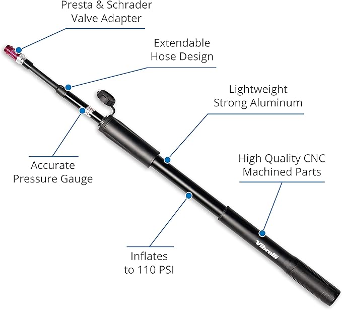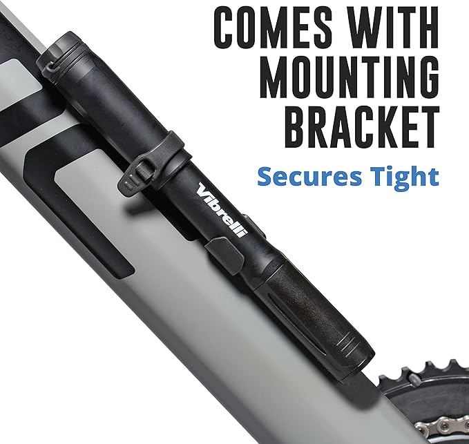 Vibrelli Mini Bike Pump - Presta & Schrader Bicycle Pump - 120 PSI Tire Pump for Road & MTB - No Valve Changing Needed