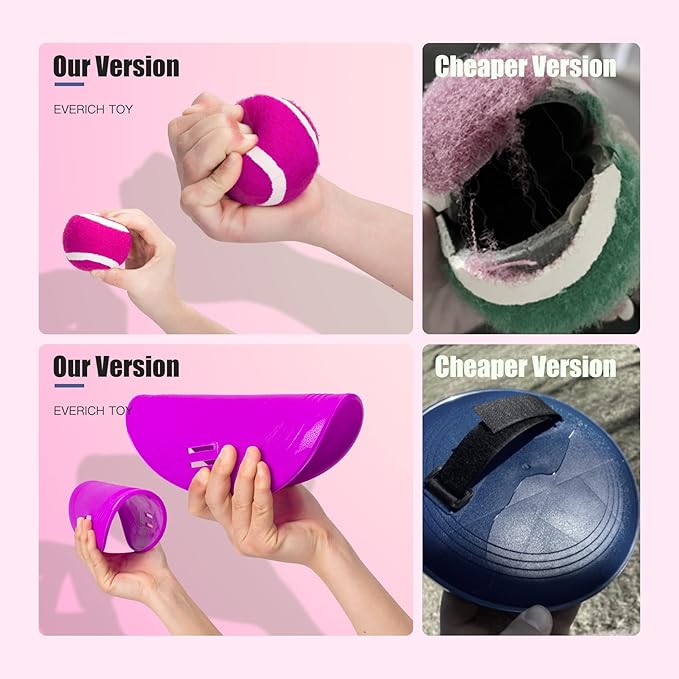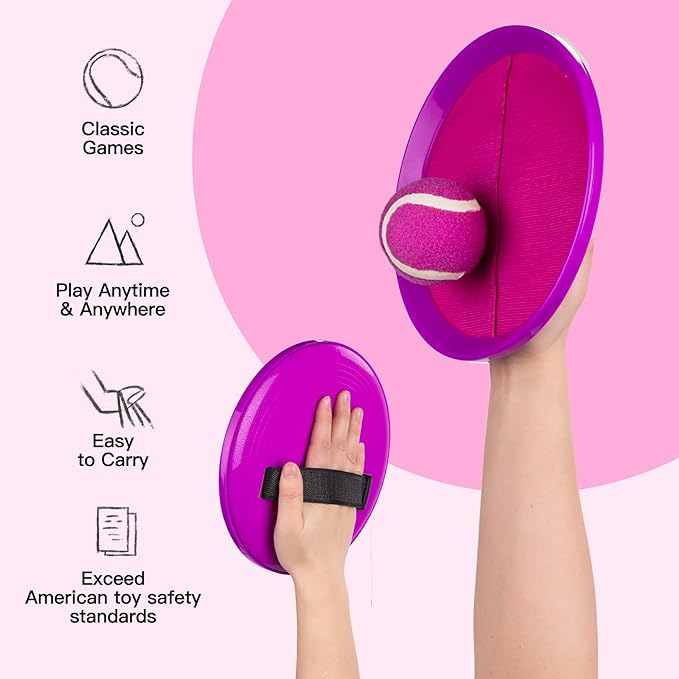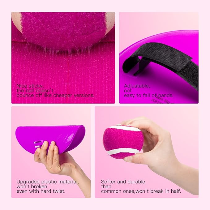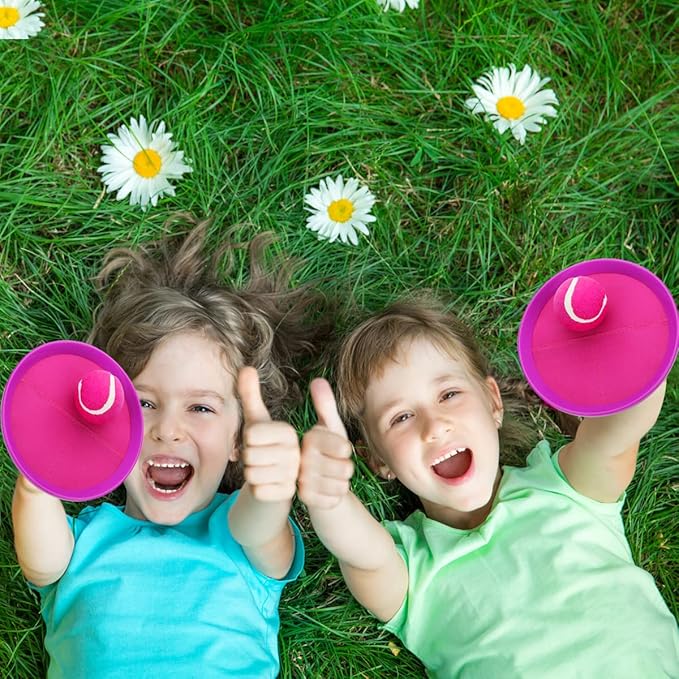 - 【Softer and High-quality Ball Set】The old version's tennis balls were very hard and lacked elasticity, making them difficult for kids to catch. Our balls are much stronger and softer, yet still have great stickiness, so kids can easily catch them and enjoy a comfortable feel. Kids won't lose their fun because they can keep catching the ball. This ball game is always lots of fun for little ones, even at family reunions.