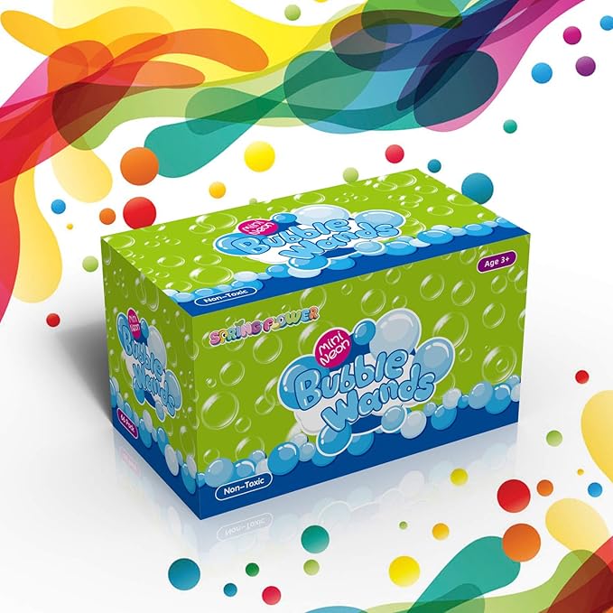 - Worth every penny: This Super Value pack included 66 pcs Bubble Soap Liquid wands, with a cute star design and 6 bright vibrant colors-Pink, Orange, Yellow, Green, Blue, Purple. Sturdy colorful box packaging will make sure every product is delivered in good condition,won't have any leak problems.