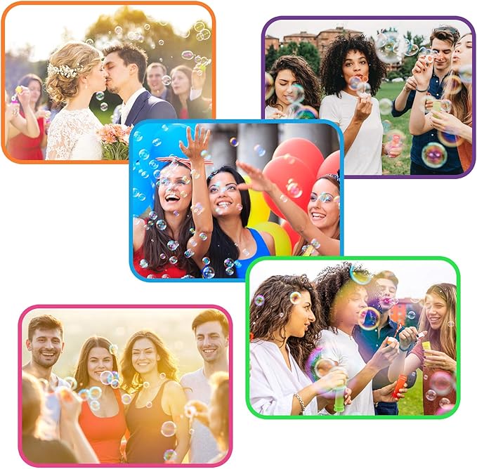 - Safe bubble solution formula: Easy to do bubbles (not basically water with a tad of soap-like others), No smell, Non-Toxic. Very Safe to Kids’ Skin and Face. Do Not Drink.