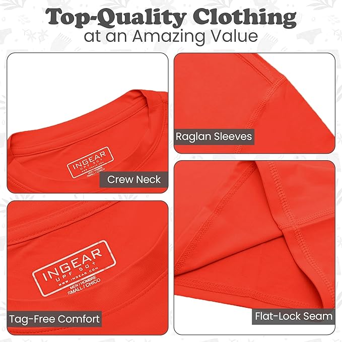 INGEAR Boys' Rash Guard UPF 50+ Swim Shirt - Lightweight, Quick-Dry, Durable Sun Protection for Swimming, Sizes XS-XL