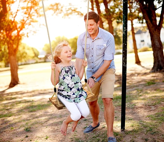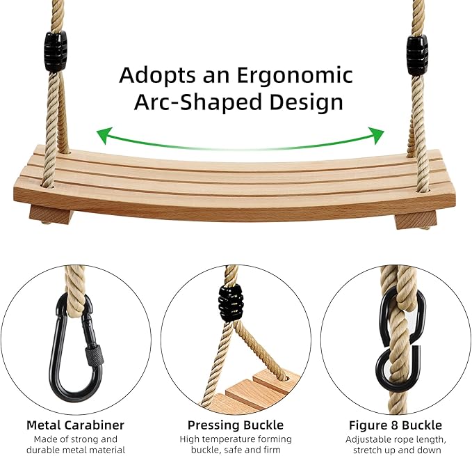 - Easy Assembly: The wooden swing set is easy to assemble, just hang the twine on a sturdy tree branch or beam; Whether it's in the backyard, porch, patio, garden, park, or home, you can let your kids and family enjoy the happy childhood time togeth