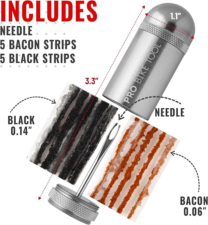 - Comprehensive Kit Included: Comes with tire reamer, insertion tool, 5 thin plugs 0.06 in for road tires, 5 thick plugs 0.14 in for MTB or hybrid tires; made from vulcanized rubber for durability