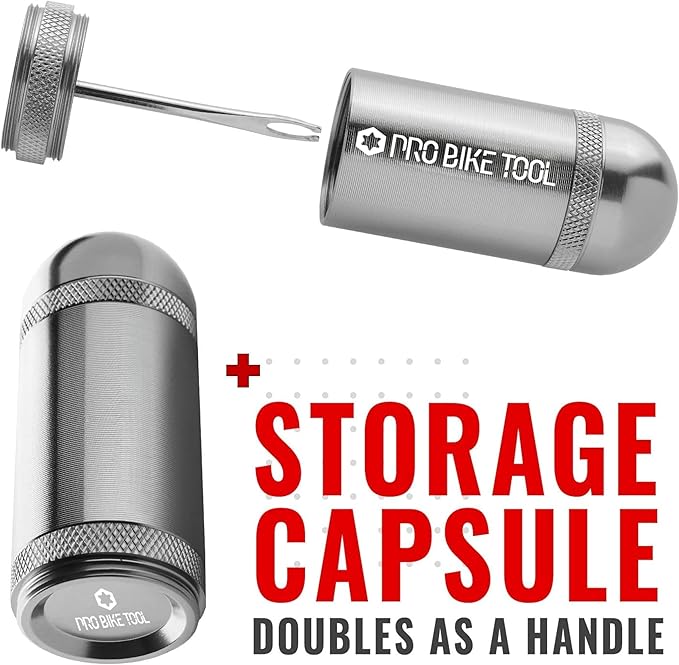 - Compact Design: CNC-machined aluminum storage capsule doubles as a handle; safely stores plugs and tools; fits conveniently in saddle bags or backpacks; weighs 1.8 oz, dimensions 3.03 x 1.1 in