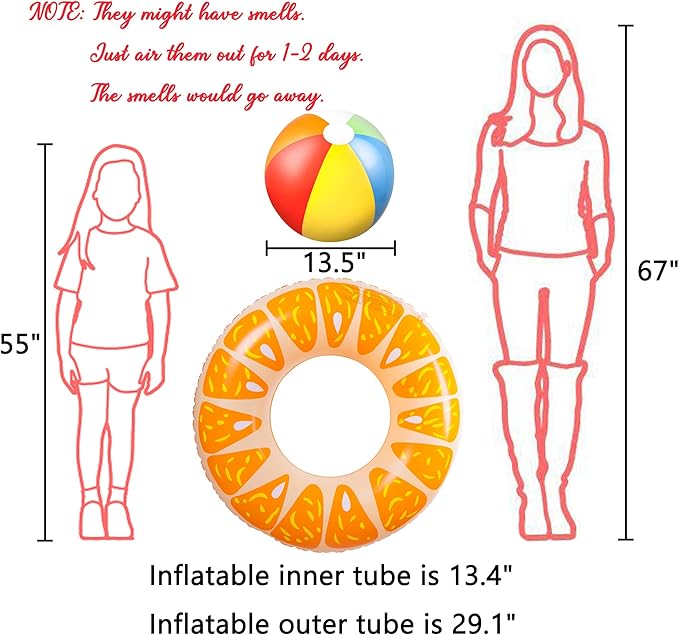 - Summer Fun for Kids and Adults: Inflatable inner tube diameter is 13.4 inches, outer tube diameter is 29.1 inches; beach ball diameter is 13.5 inches