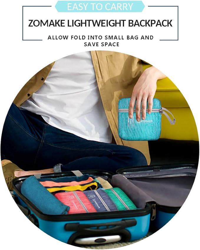 ZOMAKE 25L Ultra Lightweight Packable Backpack, Foldable Hiking Backpacks Water Resistant Small Folding Daypack for Travel(Aqua Blue)