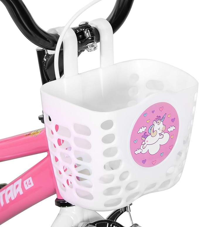 - DESIGN FOR KIDS - 1.This kids bike comes with flash training wheel, basket and water bottle for early rider. 2.Quick release seat simplify the height adjustment. 3.Saddle with holder to learn riding when the training wheel is off. 4. Foot brake and handbrake easy to provide phenomenal stopping power when needed.