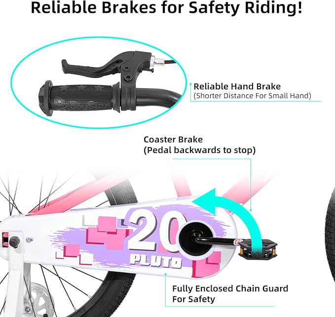 - DIY DECAL & SAFE CHAIN GURAD - Your child will get a DIY decal, they could make a unique bike with the decal by sticking their name on the frame or chain guard. The chain guard well protects the chain, it will last longer than other bikes, your child will not get hurt when try to touch the chain.