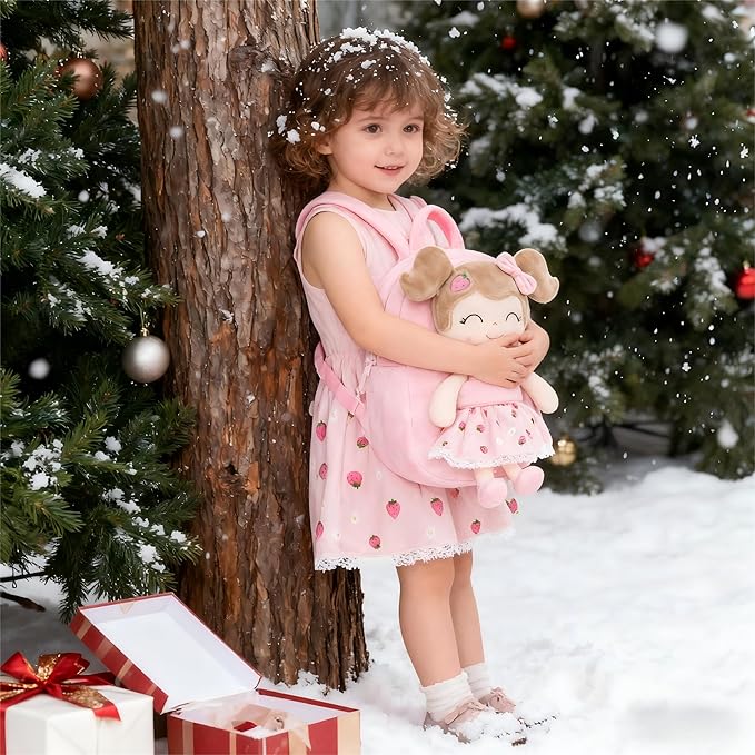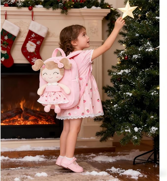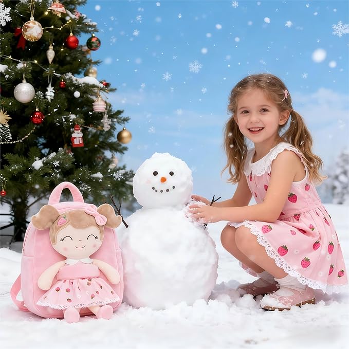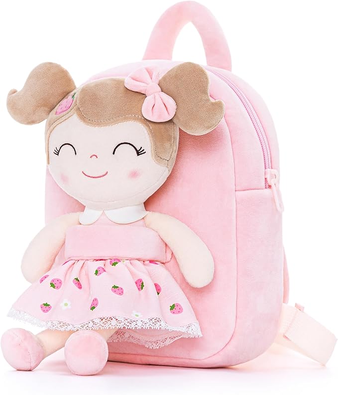 Gloveleya Kids Backpack for Girls backpacks Plush bag with Soft doll for Toddler baby Strawberry 9 Inches