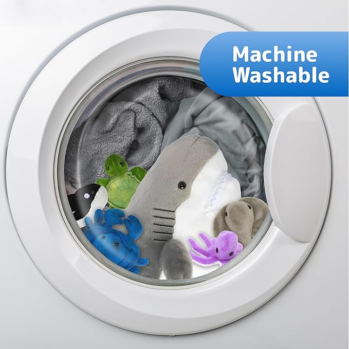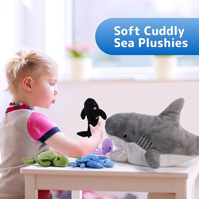 - Complete Plush Shark Set for Kids: This plush shark toy includes five sea creatures inside; a turtle, whale, octopus, stingray, and crab, making it a fun and interactive stuffed animal gift