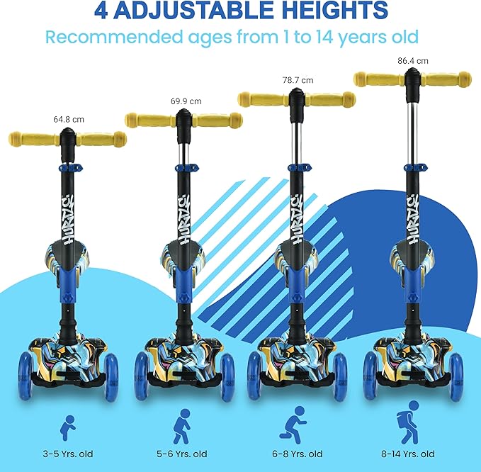 - ADJUSTABLE EASY-GRIP HANDLEBAR - The handle height offers 3 adjustments. The lean-to-steer technology lets leaning, instead of turning, to control the ride, for better balance and coordination.