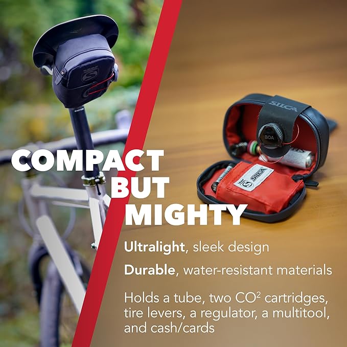 - Volume: The Mattone bicycle saddle bag holds one inner tube, one CO2 cartridge, SILCA bike tire lever set, CO2 regulator head, credit card/ID, and multitool with ease.