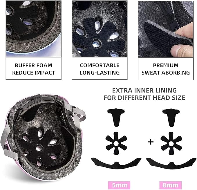 - 【Kids Helmet for Multi-Sports 】Provide Protection for Skateboarding ,Roller skating ,Inline skating ,Scooter ,Biking ,Longboard ,Rollerblading ,Hoverboard ,Street dance,Balance bike,Cycling, etc.Adjustable toddler helmet size to accompany kids' growth, It is a perfect gift for boys and girls