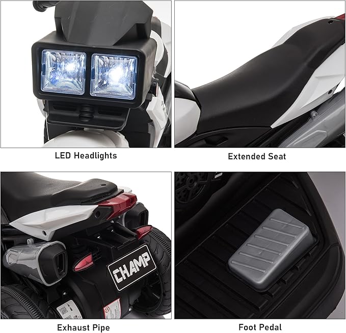 - Authentic Experience: Your youngsters will be entertained and captivated by the toddler motorcycle's lighting. Just stepping on the electric pedal propels this child-sized kids motorbike forward with the noise of a real engine.