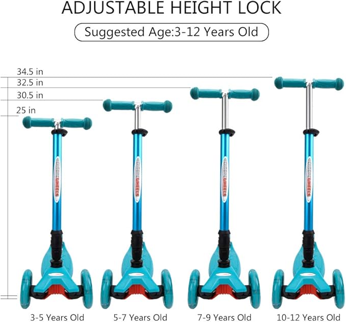 - Adjustable Handlebar Height: Our Kick Scooter with adjustable height aluminum alloy handlebar can be adjusted from 25 to 34.5 inches, with a max weight of 132lbs, great for 3-12 years children, boys & girls.