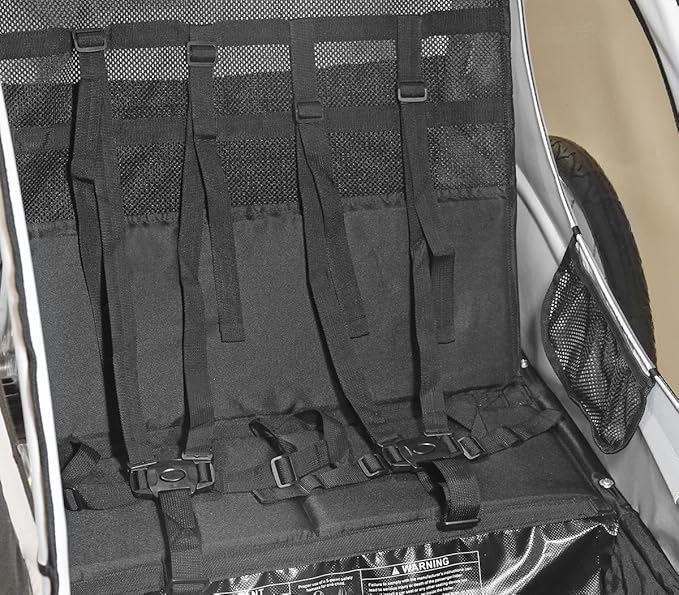 - PROTECTION & SAFETY - The top plastic cover, mesh window and tinted side windows provide protection in many weather conditions. Reflectors are included on all four sides of the trailer and on the rear wheels for extra safety.