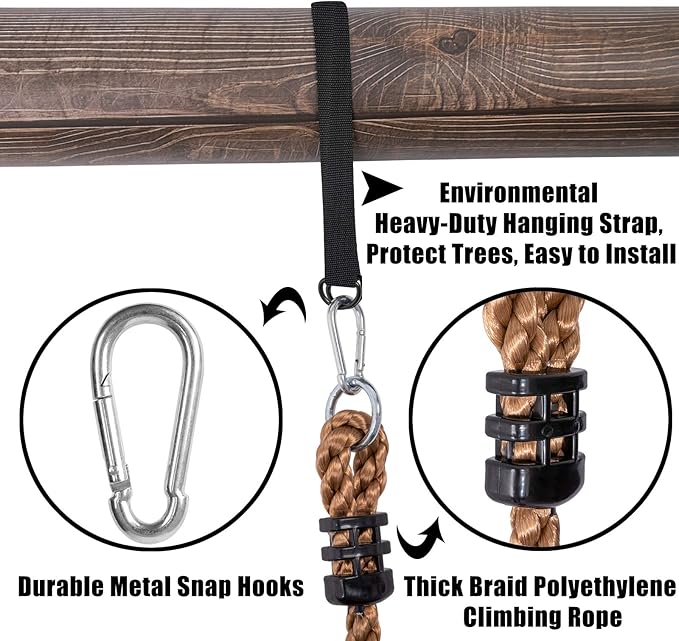 - Easy to Install: This climbing rope is very simple and fast to install. It only takes a few minutes to assemble them together, hang them in your backyard, and let your children experience the fun of outdoor activities!