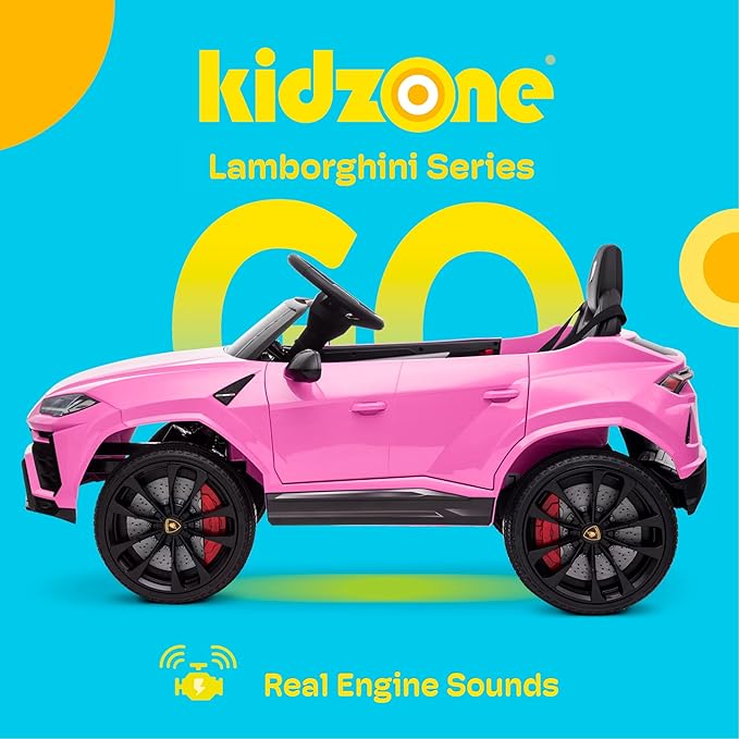 Kidzone Ride On Car 12V Lamborghini Urus Kids Electric Vehicle Toy w/Parent Remote Control, Horn, Radio, Port, AUX, Spring Suspension, Opening Door, LED Light - Pink