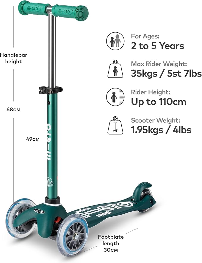 Micro Kickboard - Mini Deluxe Eco, 3-Wheeled, Lean-to-Steer, Swiss-Designed Micro Scooter Made with Recycled and Sustainable Materials, for Preschool Kids, Ages 2-5