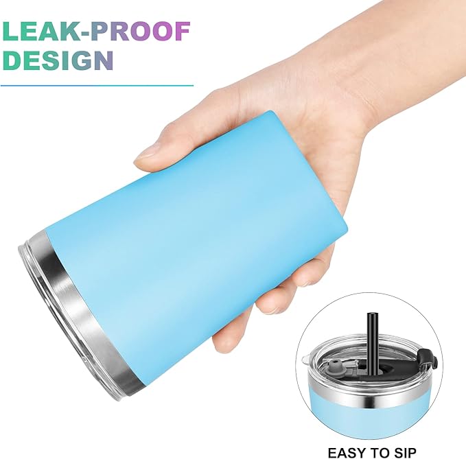 - Colored Powder Coated Tumbler: The stainless steel cups is crafted with stylish color powder coating, gives you multiple color options. It's cool to touch when filling with hot water and also sweat proof with cold water, always keep your hands comfortable while holding the stainless steel tumblers