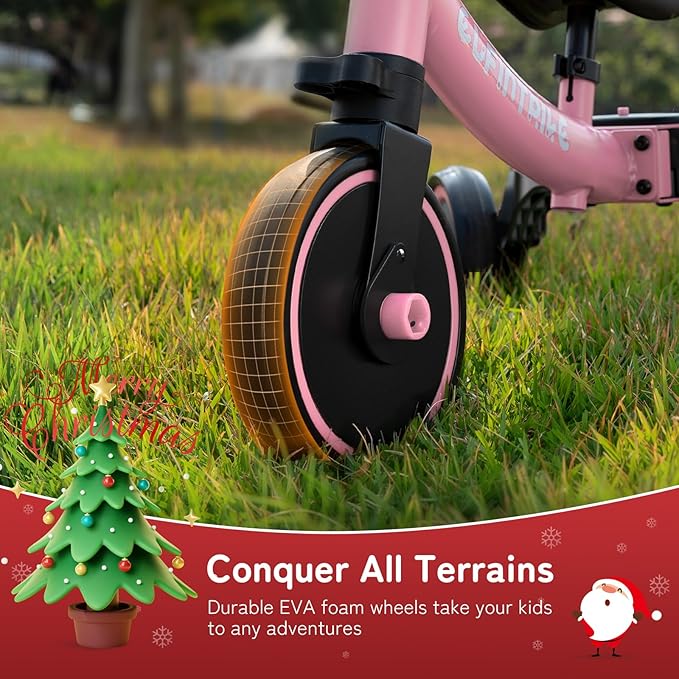 - Sturdy and Safe: Sturdy carbon steel frame make the tricycle stable and durable. Non-slip handrail Limited 70° steering to prevent rollover, the widen and fully-enclosed wheel protect your child from falling or slipping whether on the road, in the yard or in the garden. Ensure full protection for kids playing inside or outdoor.
