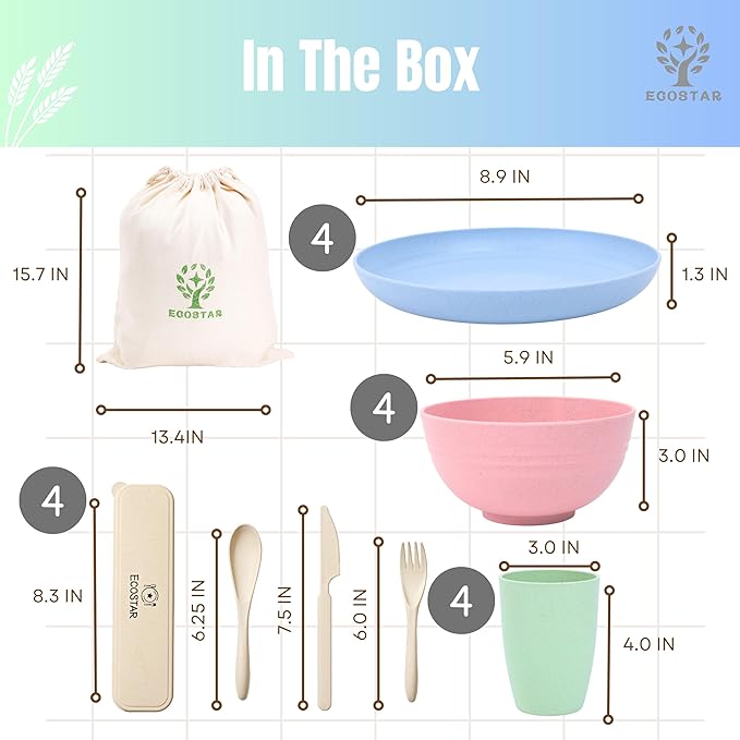 ECOSTAR Wheat Straw Dinnerware Sets Unbreakable Plates Bowls and Cups Reusable Utensils Dishwasher Microwave Safe Bowls and Plates Sets (Classic)