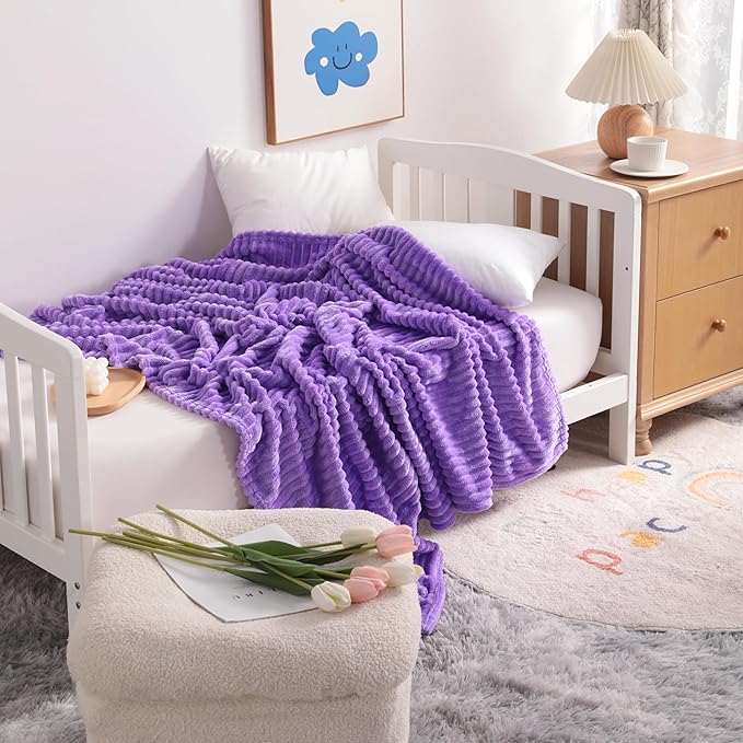 NTBAY Plush Flannel Oversized Baby Blanket, 50X60 Inches Soft and Warm Toddler Blanket with Striped Texture Nursery Bed Blanket for Stroller, Crib, Travel, Baby Gift, 50"x60", Purple