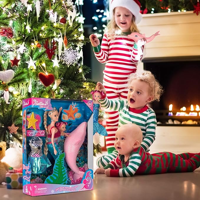 - 💖【Best Mermaid Gift Idea】- If you are looking for the perfect gift for girls, go for this mermaid princess doll playset. All girls aged 3 4 5 6 7 8 9 10 like fair tale princess and pretty dolls. Never go wrong as a gift for holiday toys, pretend play, role play, party, school classroom, Eastern Day, Halloween birthday Christmas gifts.