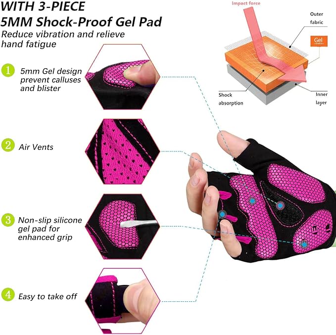 - Fur description : 3-Panel 5mm Gel pads enhances comfort without sacrificing control.Exercise Workout Gloves for Cycling/Weight Lifting/Gym/Motorcycle/Rowing Outdoor