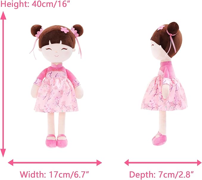 Gloveleya Baby Doll Kids Soft Doll for Kids Plush Toys Chinese Fairy Tale Dolls Toys for Ages 2-4 Peach Fairy